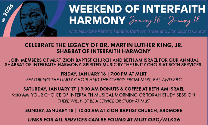 MLRT’s youth choir, The Junior Jammers, will bring music and cheer. For questions and transportation coordination, please contact Cantor Rudnick at Frudnick@mlrt.org.
